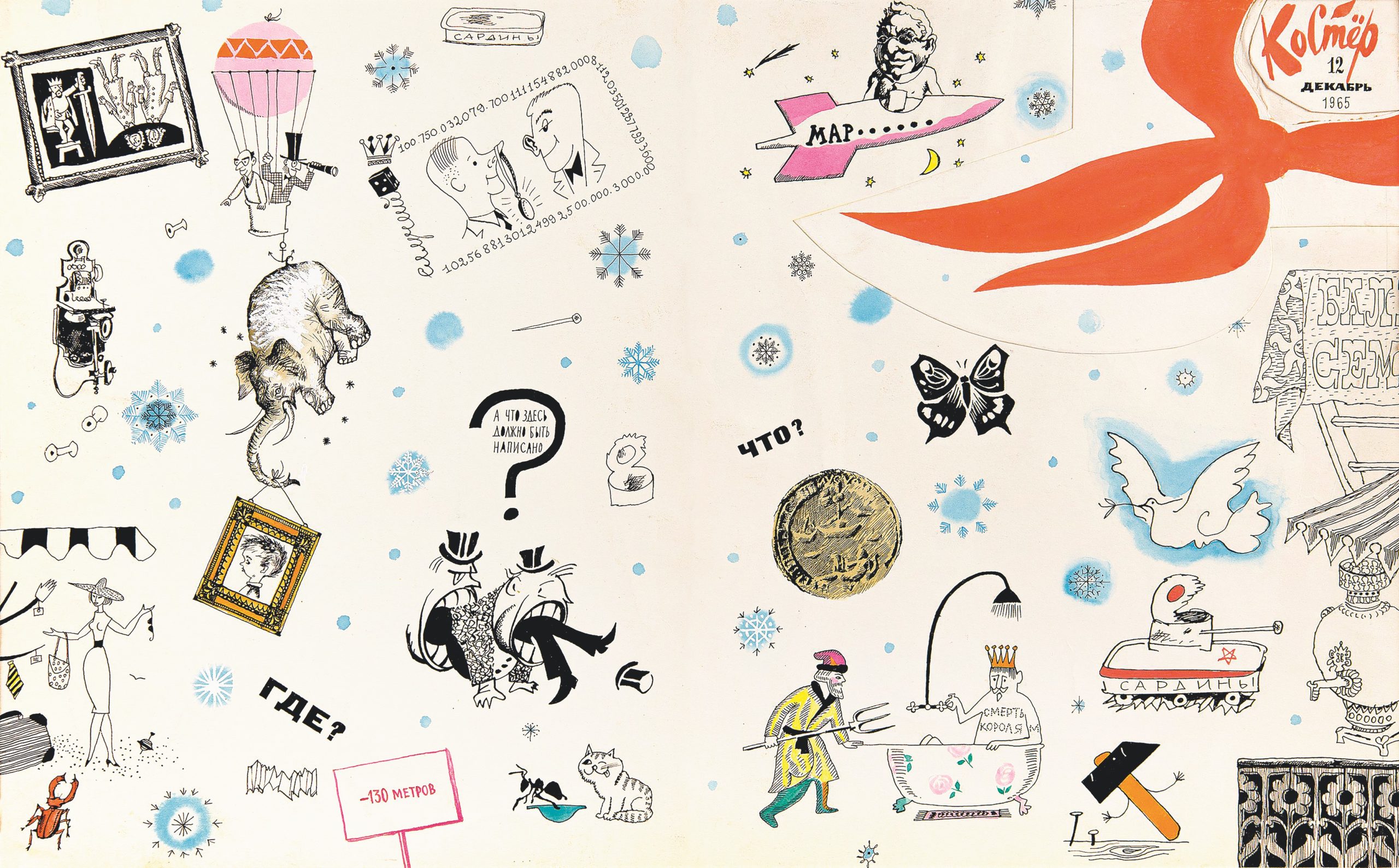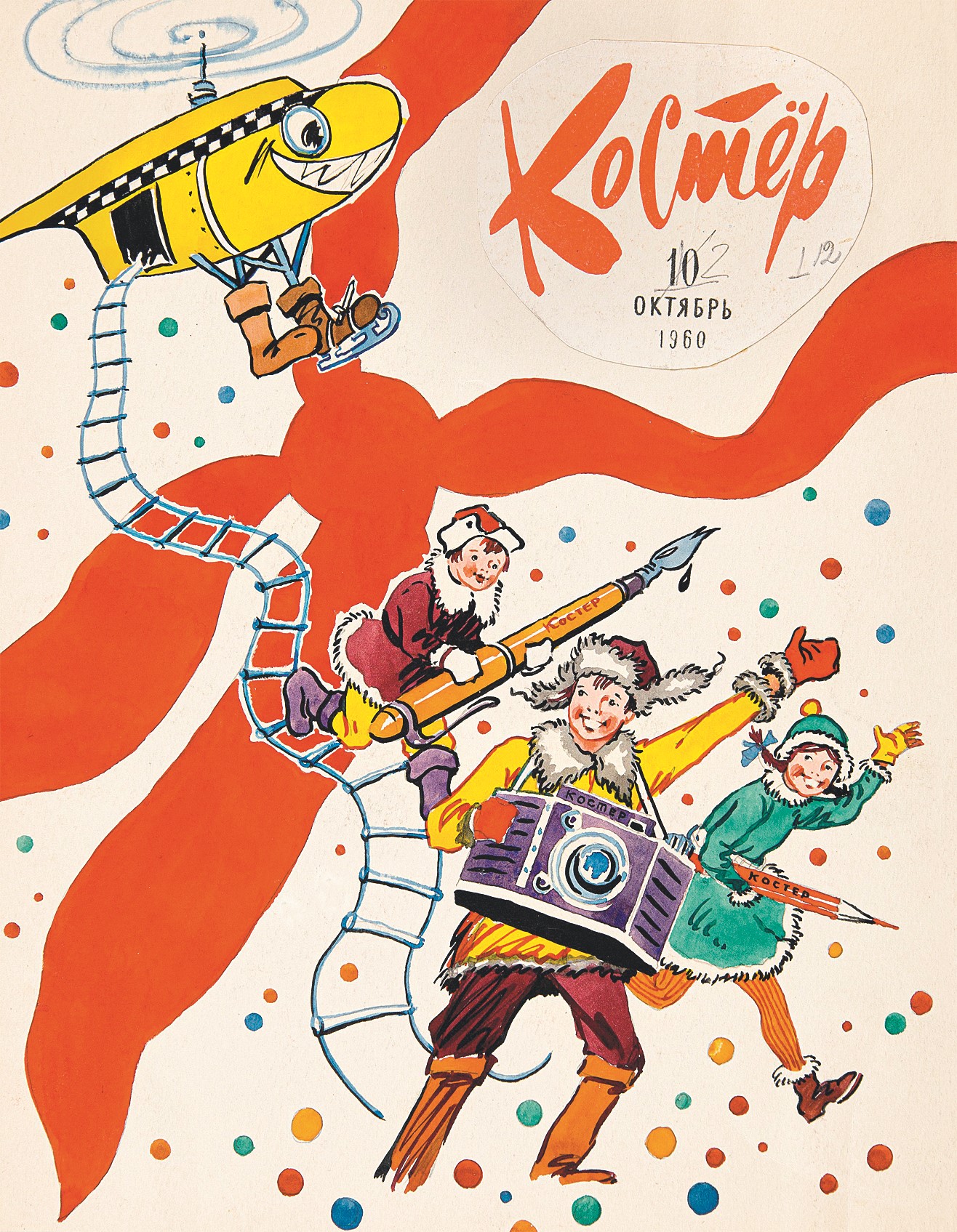 Юрий Смольников. Обложка. Журнал «Костёр», № 12. 1960 год.Светозар Остров. 1‑я и 4‑я сторонки обложки. Журнал «Костёр», № 12. 1965 год.Виктор Чижиков. Иллюстрация для обложки. Журнал «Пионер», № 4. 1966 год.Михаил Беломлинский. Повесть-сказка «В Cтране Вечных Каникул» (автор А. Алексин). Журнал «Костёр», № 2. 1966 год.Кирилл Овчинников. 1‑я и 4‑я сторонки обложки. Журнал «Костёр», № 1. 1966 год.