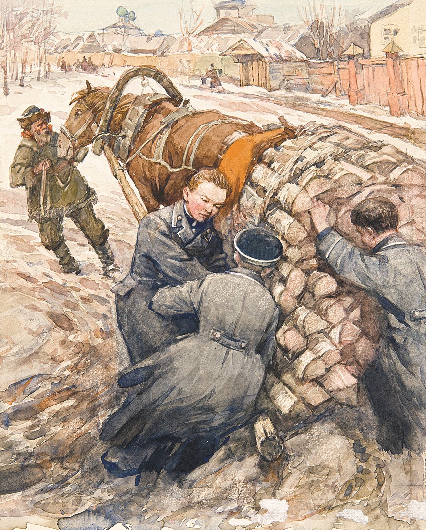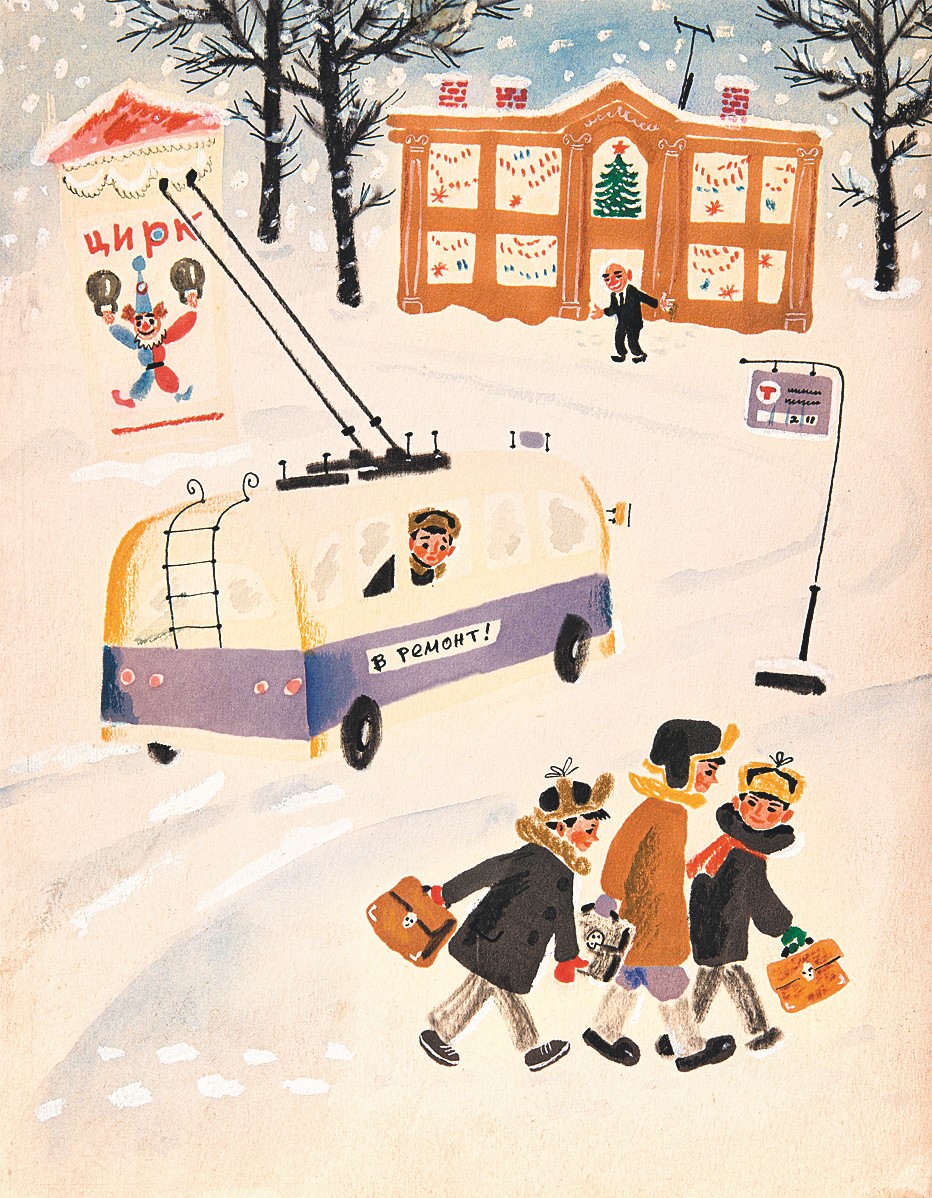 Советское детство нередко ассоциируется с зимой: катания с ледяных горок, игра в снежки, новогодняя ёлка. Вместе с тем каждому октябрёнку и пионеру были также знакомы рассказы о подвигах полярников, Февральской революции, Дне снятия блокады Ленинграда. Все эти частные и общественные темы находили своё отражение в рисунках для детских журналов. На страницах «Костра» и «Мурзилки» с весёлыми снеговиками соседствовали рисунки к рассказам о феврале 1917-ого, а сцены из Щелкунчика сменялись графикой к 27 января. Мир детской иллюстрации был особой вселенной, в которой простая жизнь и история соединялись без конфликта.