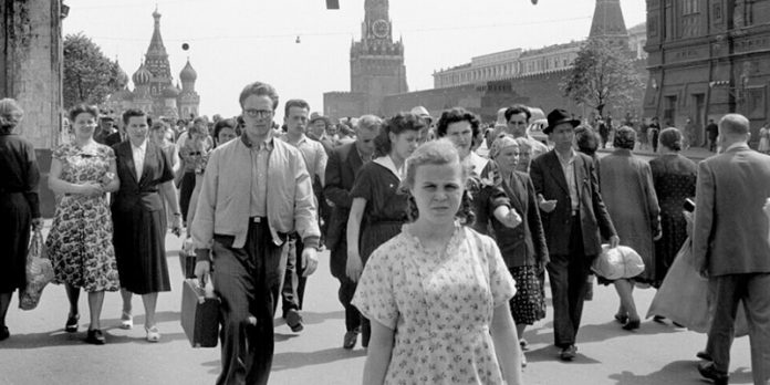 Фран­цуз­ский фото­граф рус­ско­го про­ис­хож­де­ния Нико­лас Тихо­ми­рофф про­сла­вил­ся как воен­ный фото­ре­пор­тёр и автор сним­ков зна­ме­ни­то­стей, вро­де Бри­жит Бар­до и Эдит Пиаф. На заре сво­ей карье­ры буду­щий фото­граф агент­ства Magnum побы­вал в Совет­ском Сою­зе. Тихо­ми­рофф, чьим род­ным язы­ком был рус­ский, вме­сте с жур­на­ли­стом Мише­лем Шева­лье посе­тил Моск­ву и Загорск (Сер­ги­ев Посад) в 1957 году. Нико­лас Тихо­ми­рофф запе­чат­лел жизнь Тро­и­це-Сер­ги­е­вой лав­ры, болель­щи­ков на иппо­дро­ме, показ мод в ГУМе и Дмит­рия Шоста­ко­ви­ча. VATNIKSTAN демон­стри­ру­ет эти кадры.
