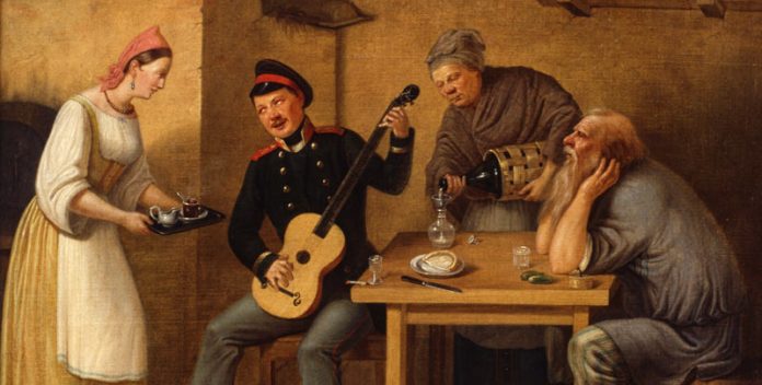Вам, веро­ят­но, слу­ча­лось, при­ни­мая ино­стран­ных дру­зей, на вопрос «Какие у вас в Рос­сии поют drinking songs?», отстав­лять рюм­ку и, пере­гля­нув­шись с сооте­че­ствен­ни­ка­ми, затя­ги­вать нестрой­ным хором «Чёр­но­го воро­на» или «Ой, мороз, мороз». Одна­ко весь­ма веро­ят­но, что ваш собе­сед­ник спра­ши­вал немно­го не о том.