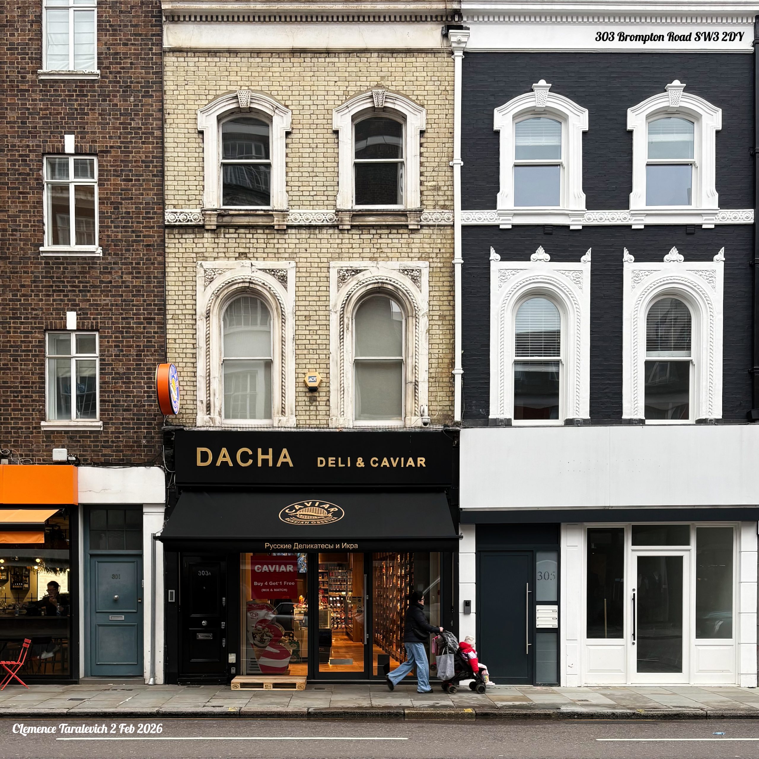 Dacha — сеть русских магазинов центрального Лондона, знакомая каждому русскому лондонцу, — открыла ещё одну точку, теперь неподалёку от станции South Kensington. Как и соседний Petrossian, бренд с российскими корнями и парижской пропиской, Dacha тоже торгует икрой. В странные 2020‑е большинство русских Лондона предпочитает не привлекать к себе лишнего внимания, в отличие от предыдущего десятилетия. Русские слова в используются всё реже — если только речь не идёт о давно устоявшихся сетях вроде Dacha или L’ETO.